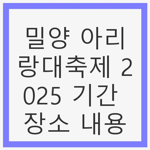 👉밀양 아리랑대축제 2025 기간 장소 내용 알아보기포토존과 즐길 거리