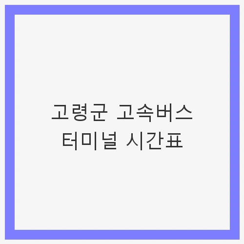 👉고령군 고속버스 터미널 시간표 바로보기주요 노선 및 요금 안내