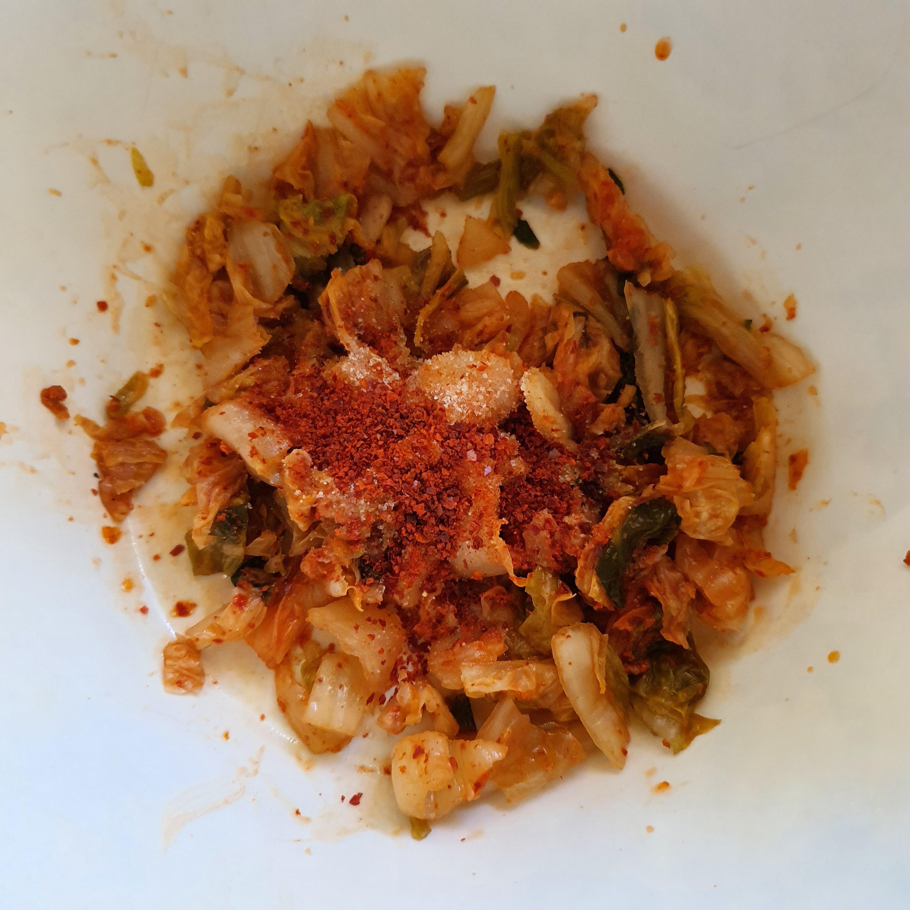 김치가 신맛이 강하면 설탕을 조금 넣어준다.