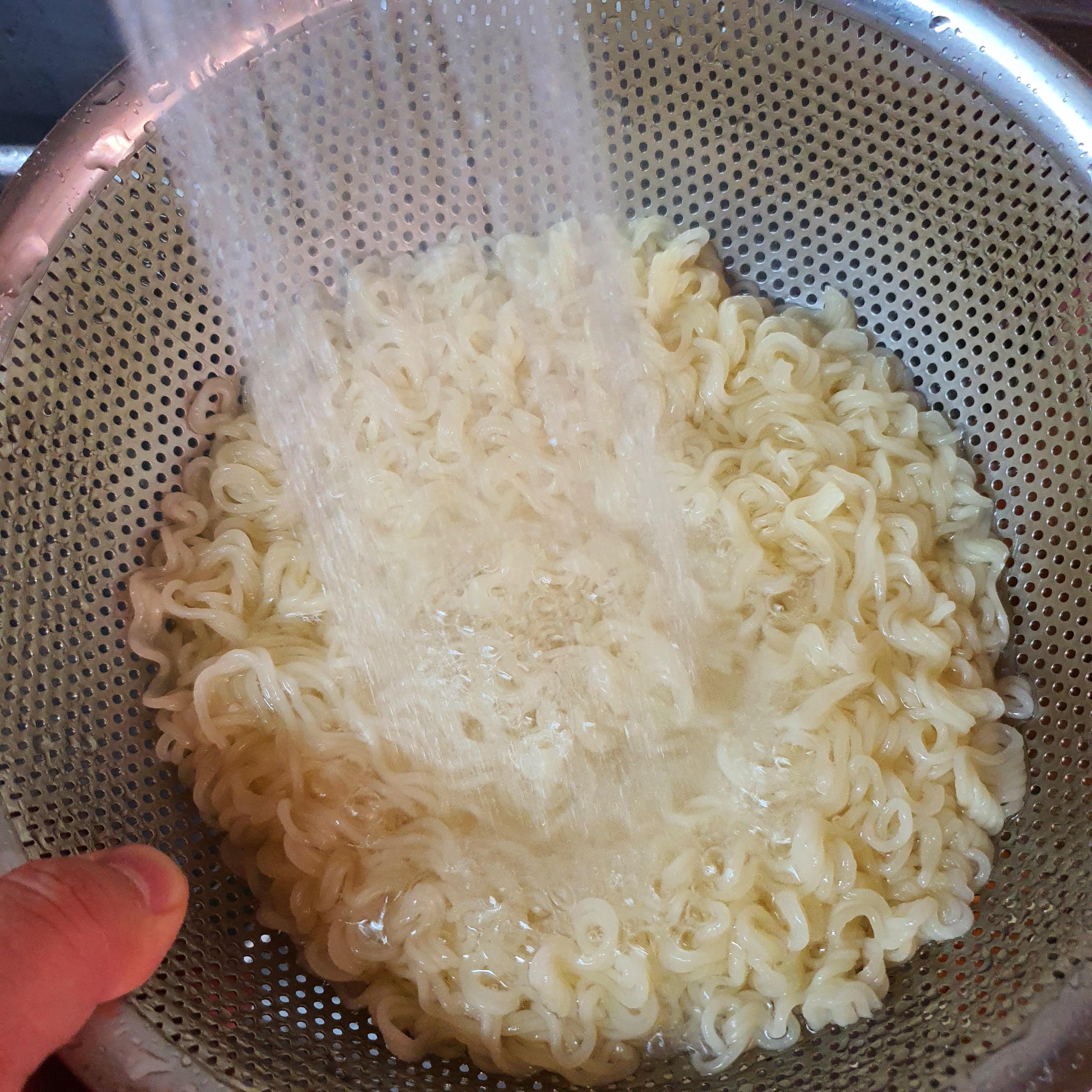 다익은 면은 찬물에 씻어준다.