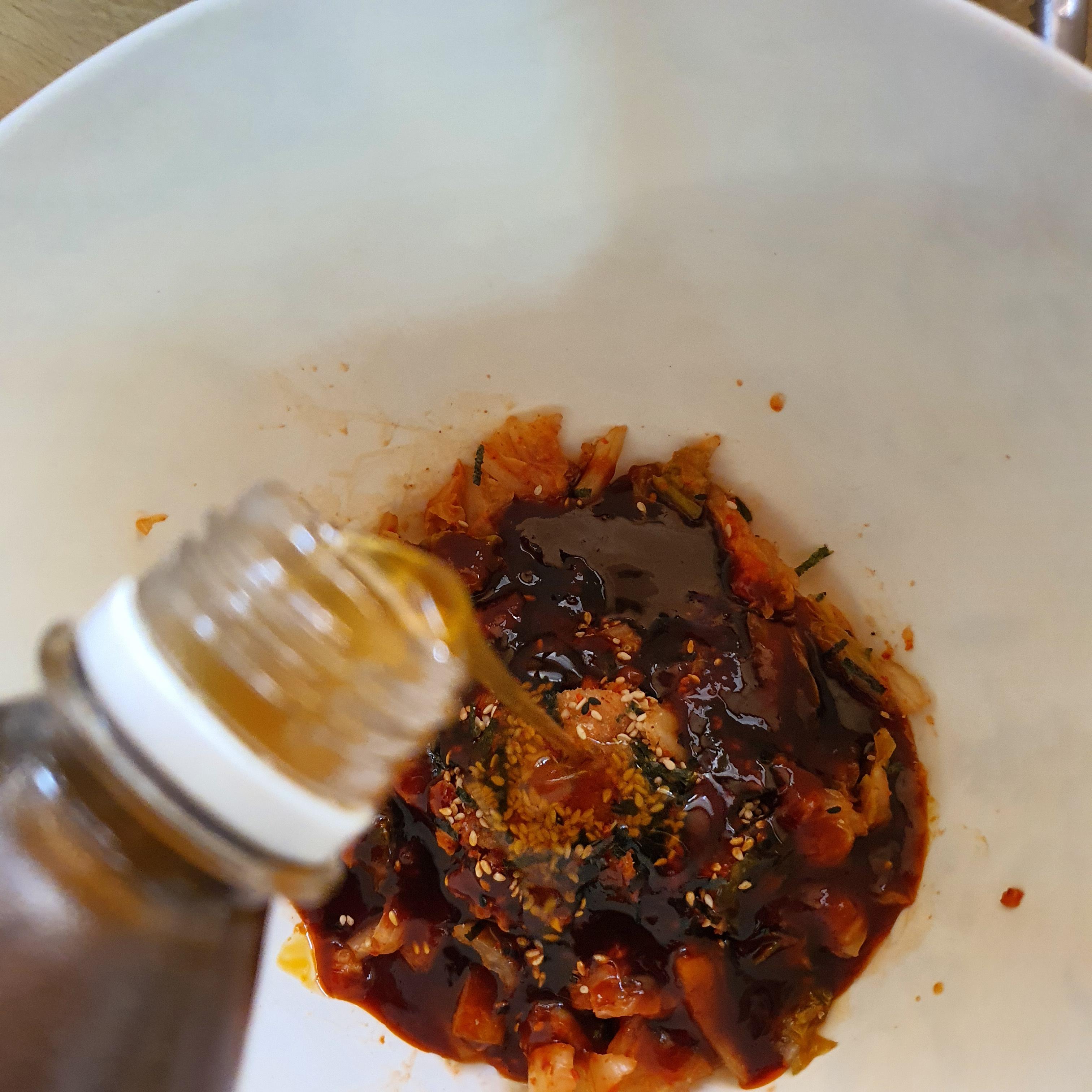 요린이 배홍동 김치비빔면이 완성되었다.
