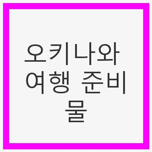 오키나와로 떠나는 여행을 준비하면서, 가장 먼저 고려해야 할 것은 필수 준비물입니다. 오키나와 여행 준비물 리스트는 크게 필수 준비물과 기본 준비물로 나눌 수 있습니다. 여기서는 각각의 카테고리에 필요한 항목을 정리해보겠습니다.