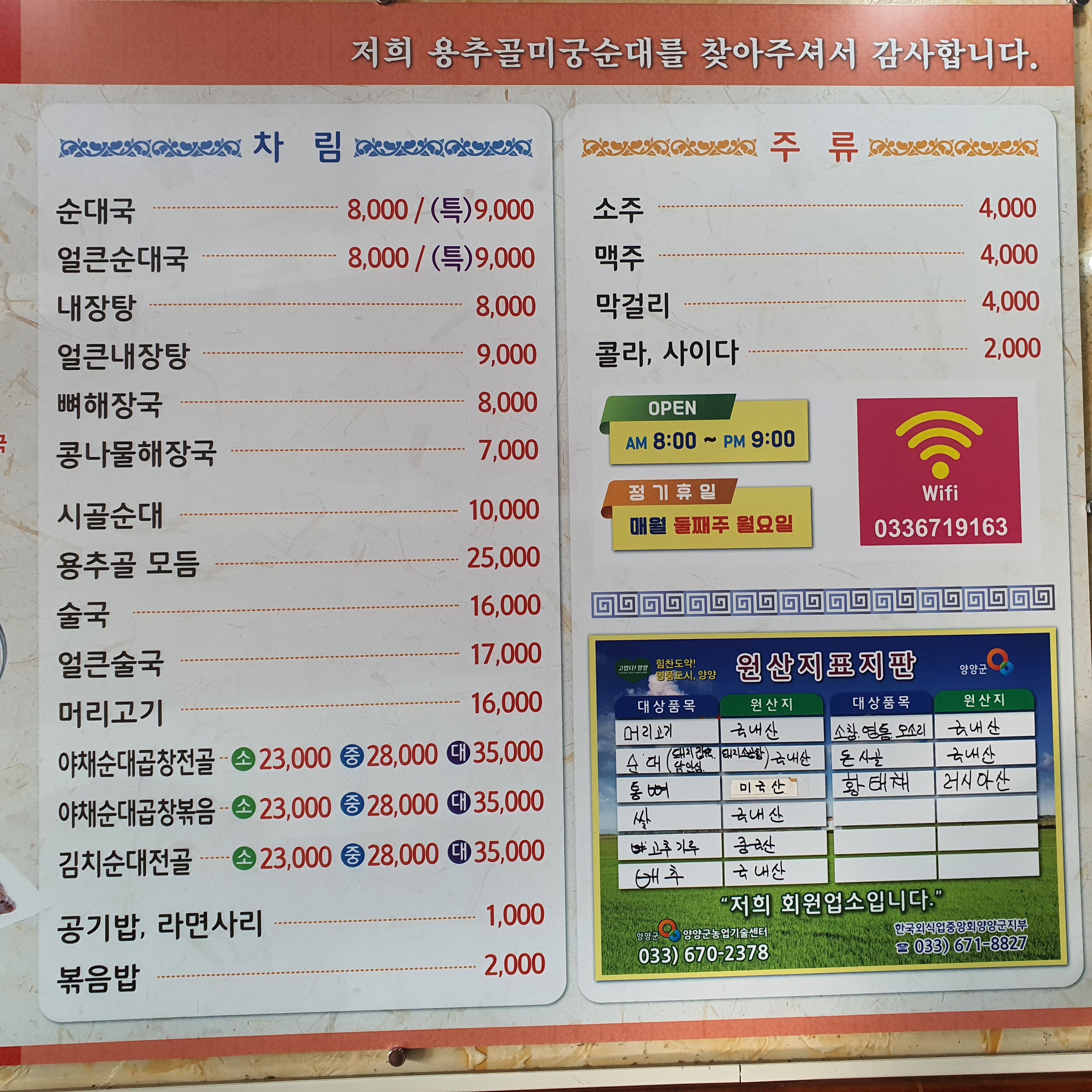양양을 오셔서 순대국이 생각나면 이곳 양양 용추골 미궁순대 에서 드셔 보시길 추천한다.