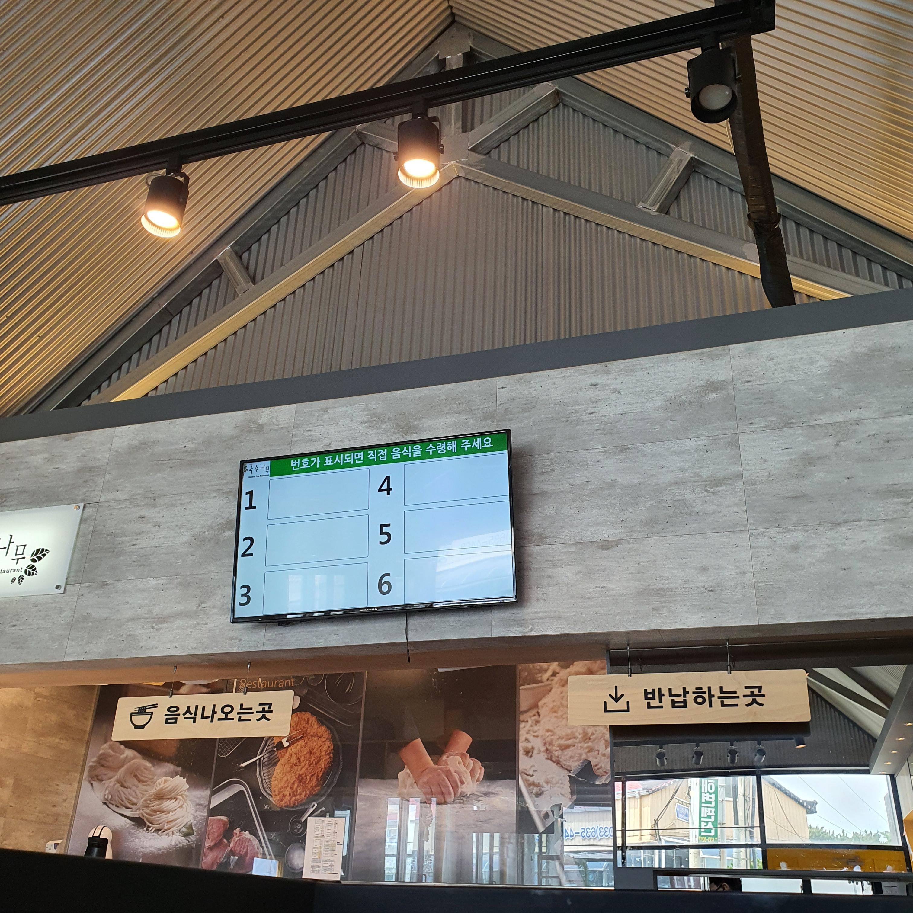 주방 위쪽 전광판에서 "띵동" 소리와 함께 번호가 뜨면 키오스크에서 주문한 영수증의 번호와 일치하는지 확인후 음식을 받아오면 된다.