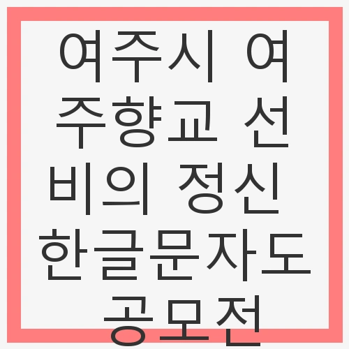 이 공모전은 여주시와 지역 주민이 함께 참여하여, 우리 문화유산을 더욱 풍부하게 발전시키고 지속 가능성을 높일 수 있는 기회를 제공합니다. 어린이들은 자신이 선택한 선비의 덕목을 한글 문자도로 표현함으로써 그 의미를 내면화하고, 이를 통해 전통문화에 대한 존중과 자부심을 느낄 수 있을 것입니다. 이제부터 이 특별한 공모전의 자세한 내용을 살펴보겠습니다.
