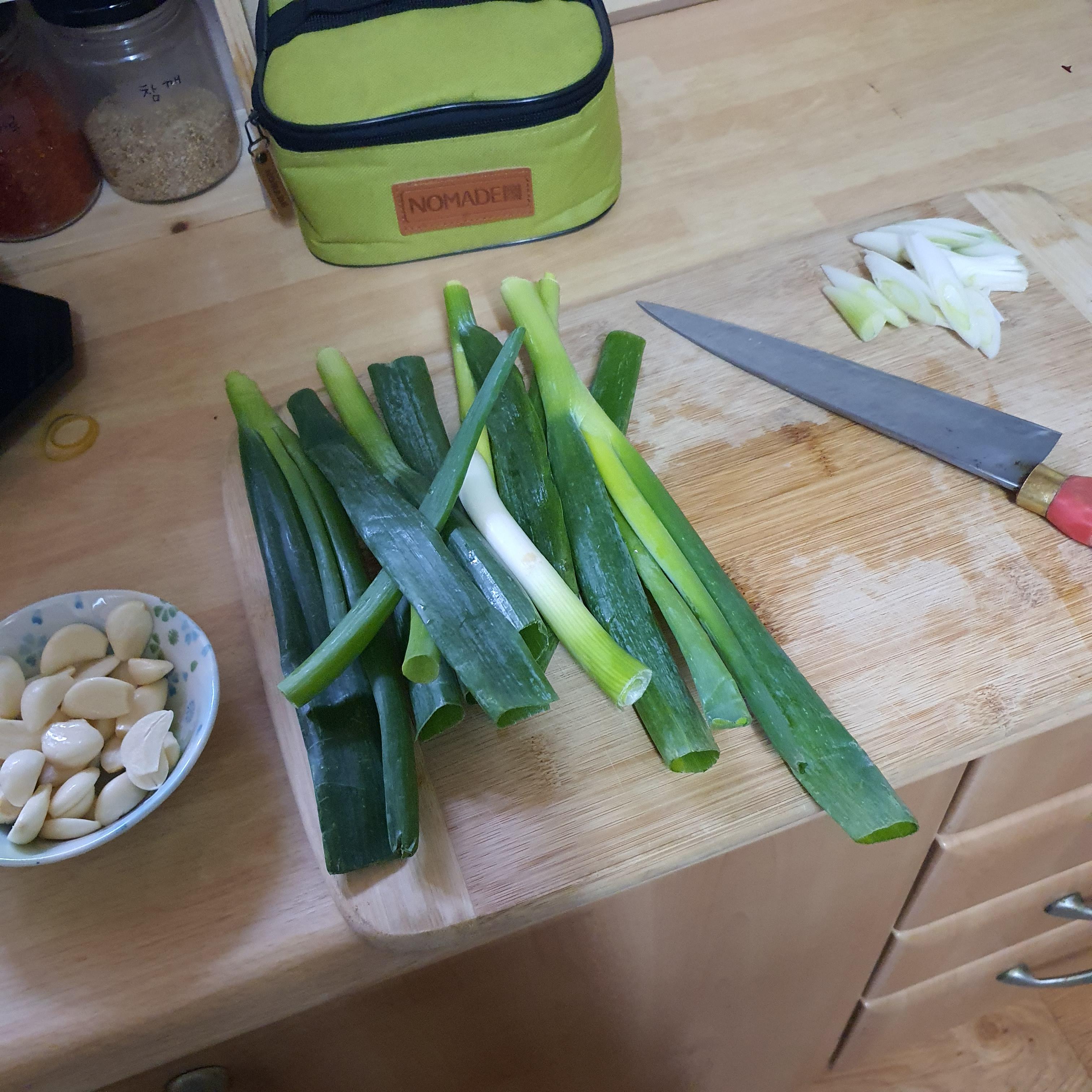 집에서 먹을 때는 파절이를 만들기 위해 대파를 두껍게 써는 편이다.