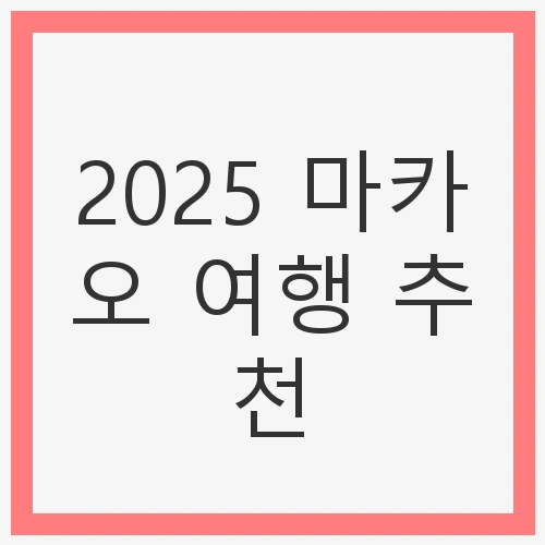 2025 마카오 여행을 계획하고 계신다면, 이 글에서 소개한 정보를 참고하여 더욱 알찬 여행을 만드시길 바랍니다. 마카오는 여러분에게 잊지 못할 순간들을 선사할 것입니다. 기대되는 여행을 위해 미리 준비하고, 즐거운 순간을 만끽하세요!