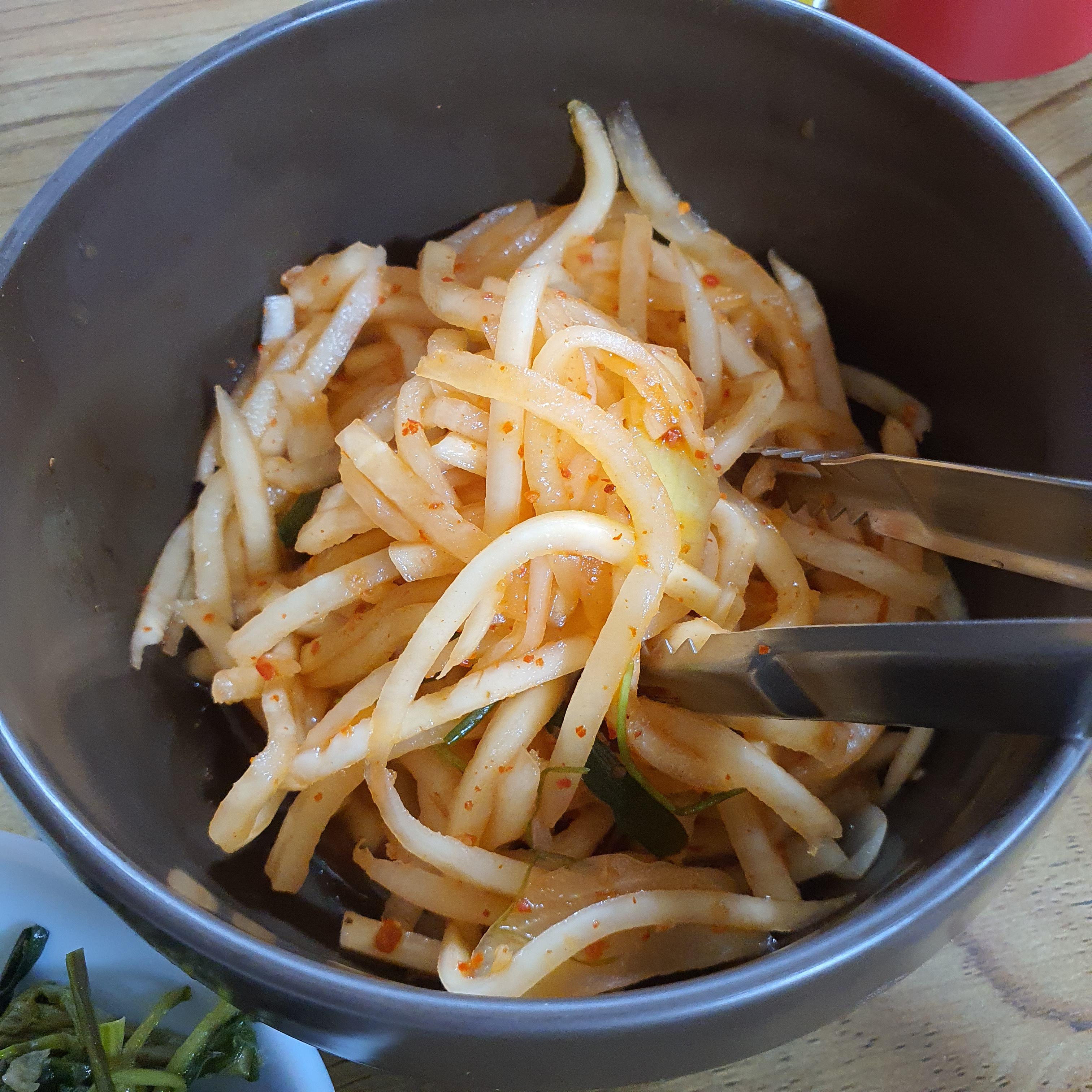 김치 종류를 너무 많이 넣으면 짜기 때문에 적당량만 넣어서 비벼 먹어야 한다.