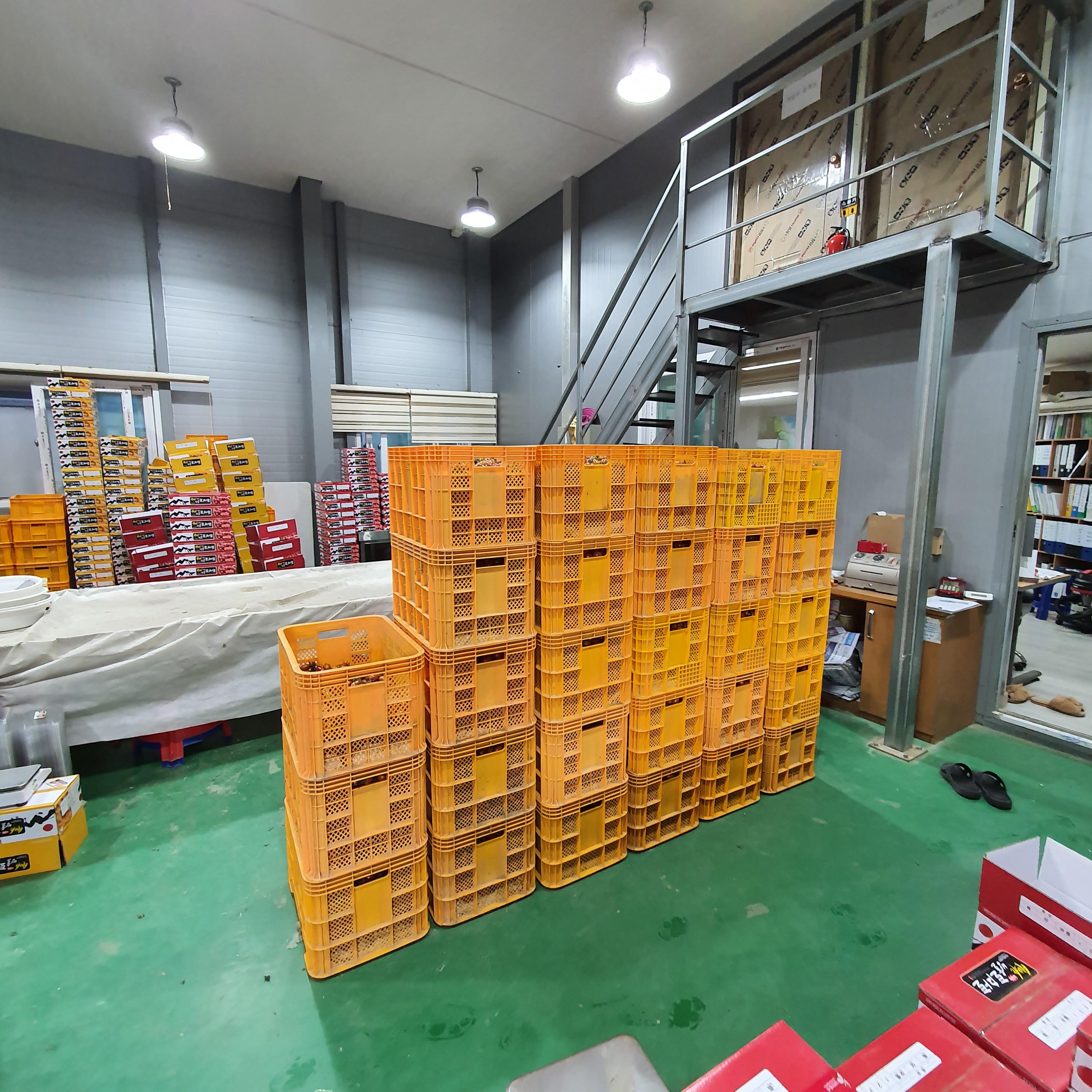 조립식 공장 같은 곳으로 보이며 안쪽으로 들어가면 수확한 방울토마토들이 판매를 기다리고 있다.