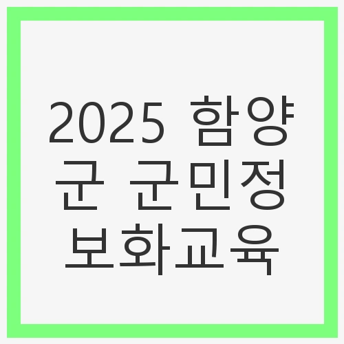 2025년 5월 7일부터 5월 30일까지 진행되는 군민정보화교육은 함양군청 맞은편의 함양기관단체청사 2층 201호에서 개최됩니다. 이곳은 접근성이 용이하여 많은 군민들이 편리하게 참여할 수 있도록 배려하였습니다. 교육에 참여하고자 하는 군민들은 2025년 4월 24일부터 5월 16일까지 전화나 함양군 누리집을 통해 신청할 수 있습니다. 자세한 사항은 아래에 정리된 내용을 참고하시기 바랍니다.