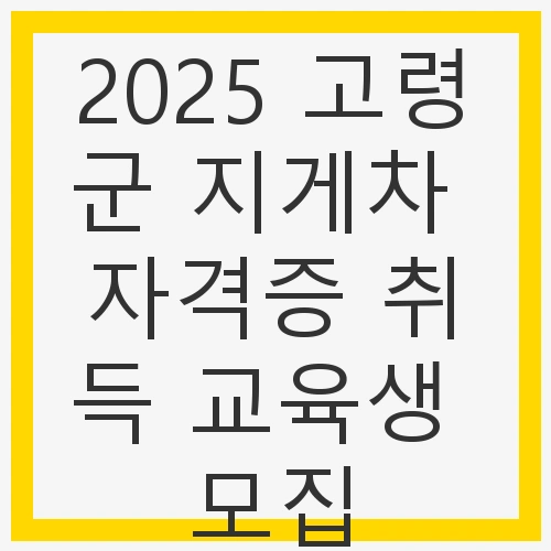 👉2025 고령군 지게차 자격증 취득 교육생 모집 바로가기교육생 모집 요건